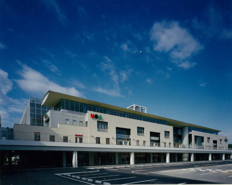 The hotel is clad in white tiles to convey an image of modernity appropriate to the airport and the feeling of spotlessness and freshness expected in an airport hotel, and to contrast with the colors of the sea and sky.