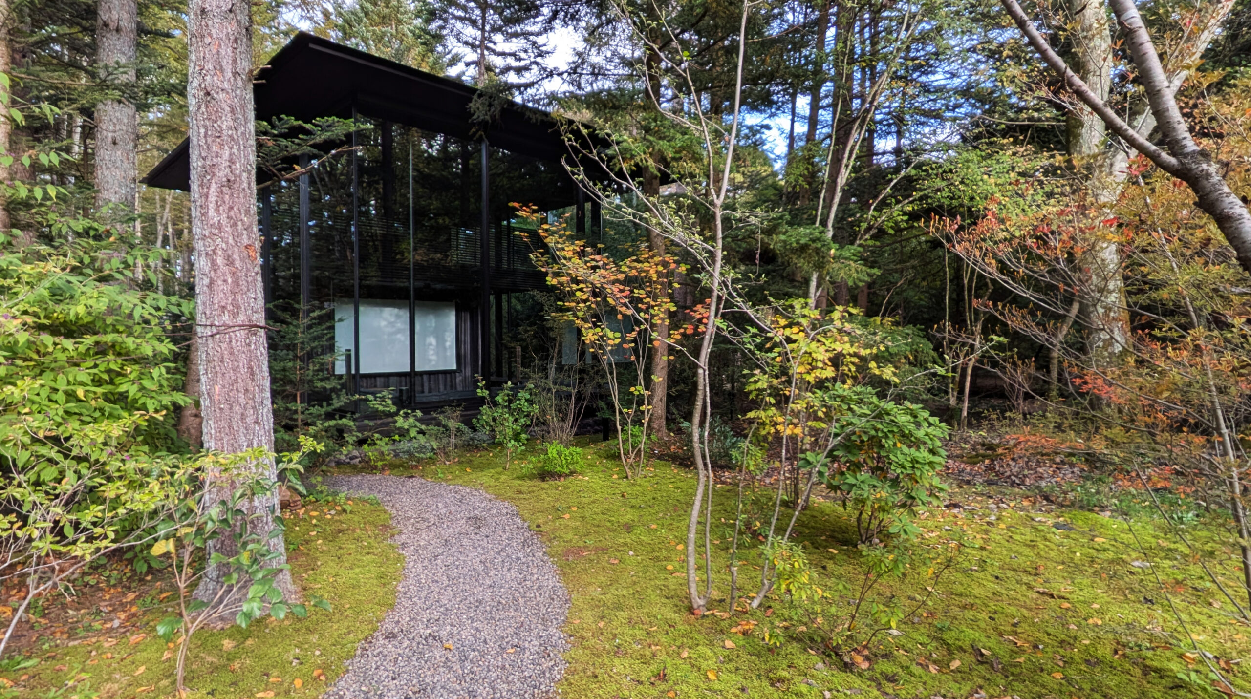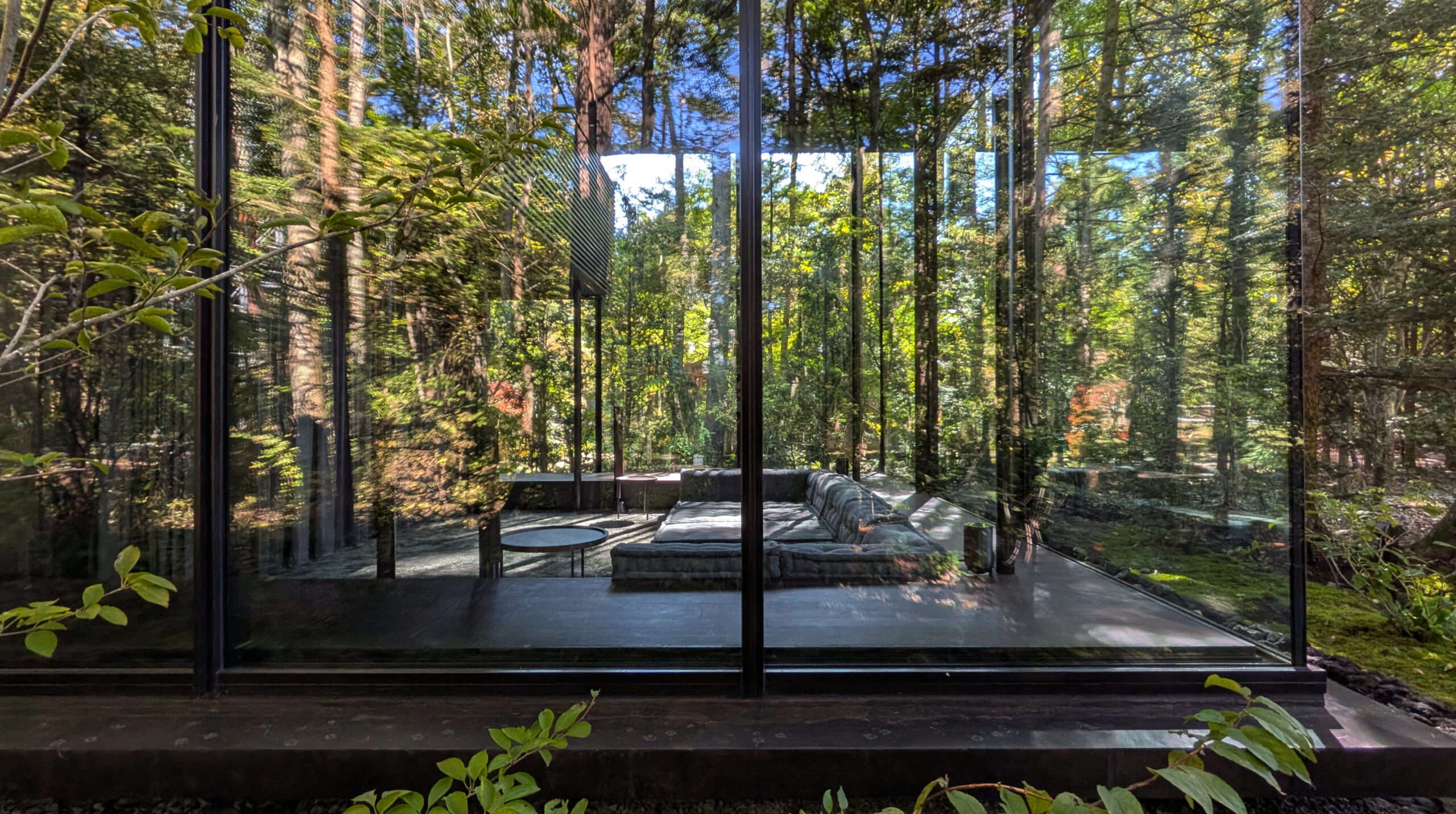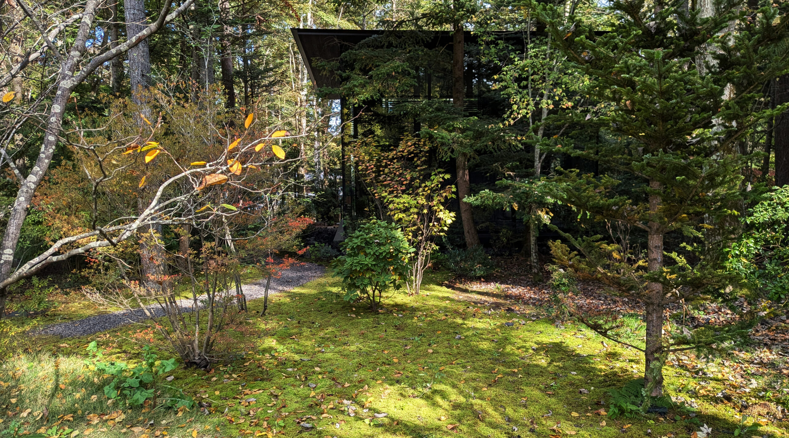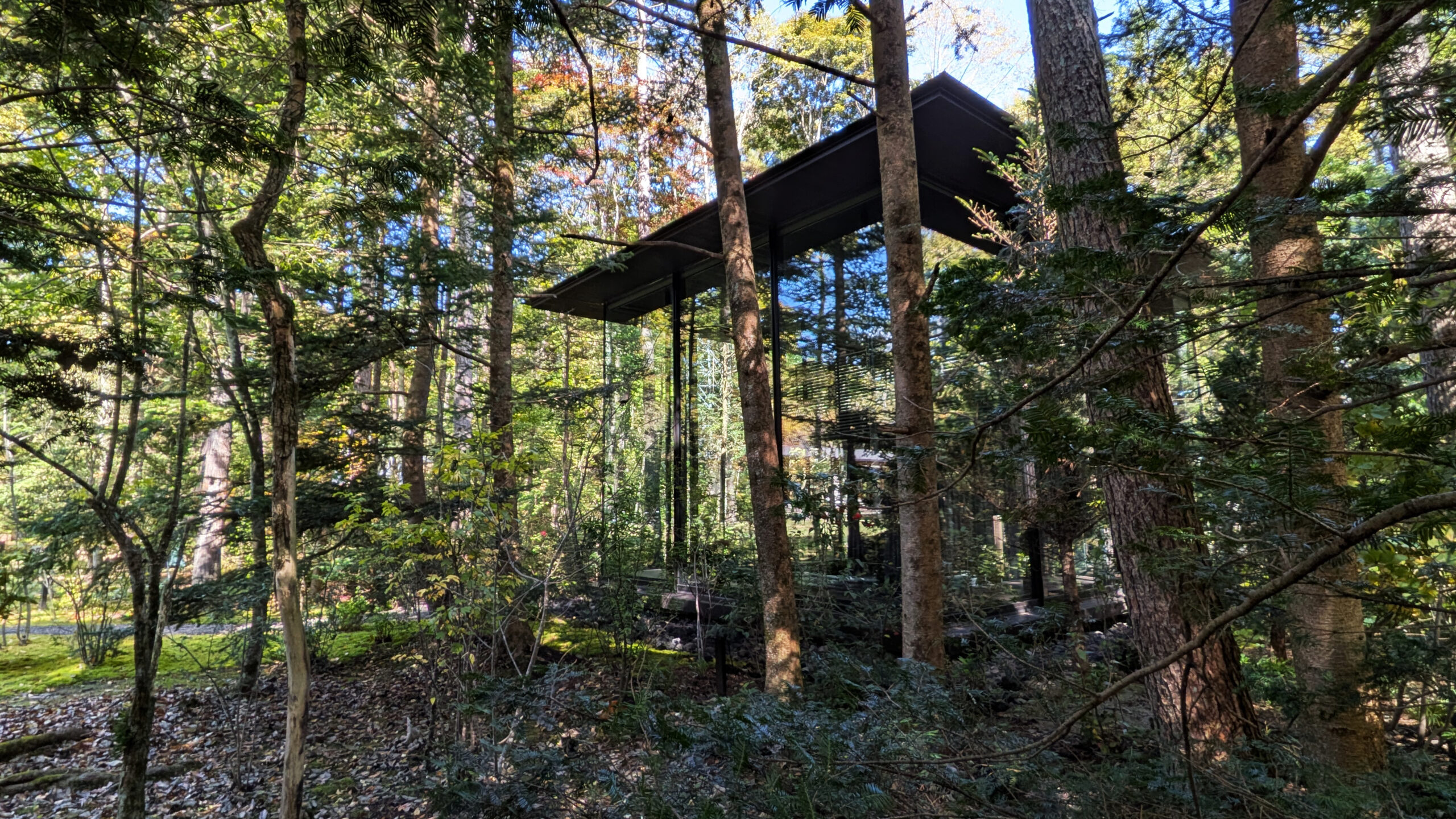 木漏れ日が差し込む森の中に浮かぶ別荘。