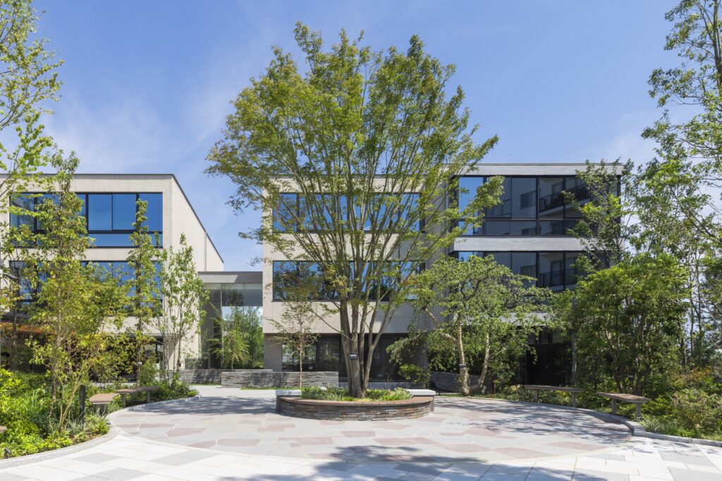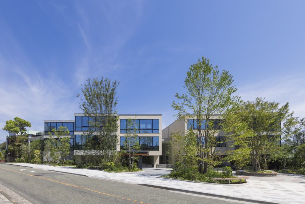 This project is one of a series of developments undertaken by the same developer across six dispersed sites in the surrounding area. Through the integration of consistent landscape design and architectural finishes, such as exterior wall treatments and planting schemes, its visual continuity has been established with the intention of contributing to a new landscape identity for the Yamate district.