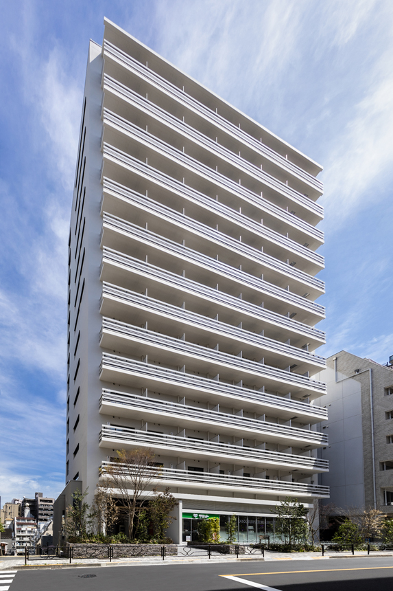 This project is a housing complex in the city center, located between the Shibaura Canal and the Shuto Expressway Bayshore Route. We focused on a gap in the slope restrictions compared to the volume consumption, we proposed a rich variety of residential space by providing ample floor height, including units with lofts, and ensuring practical space greater than the floor area number.