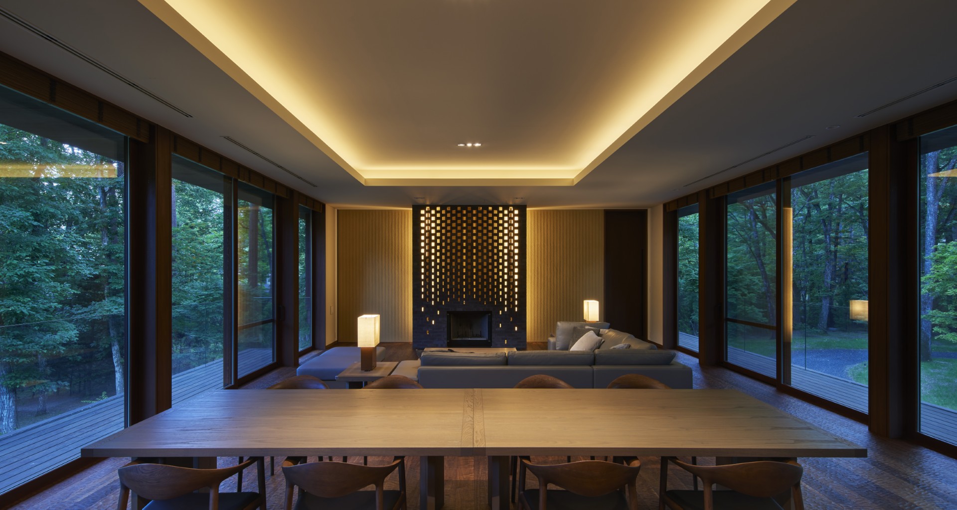 This blurs the boundary between inside and outside and brings the rich external environment into the interior.